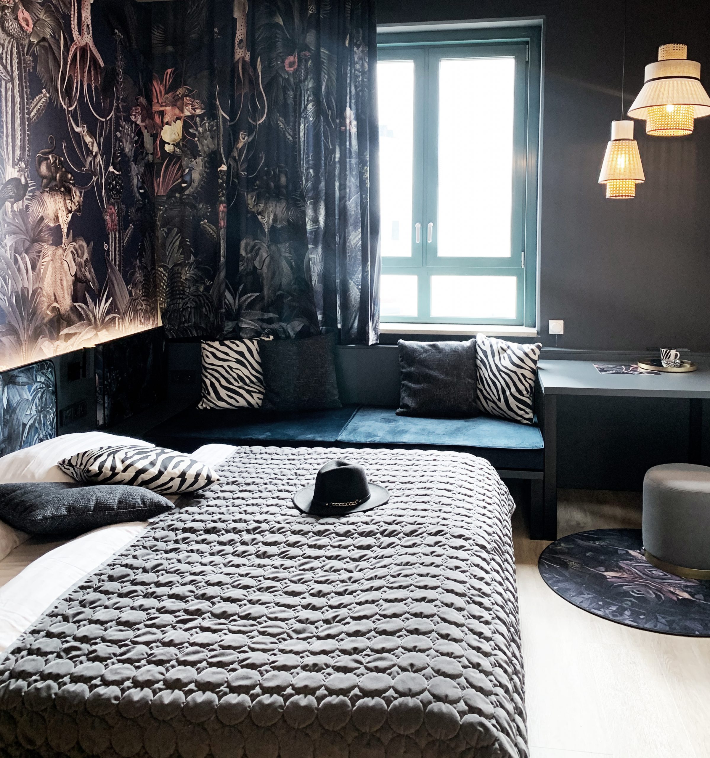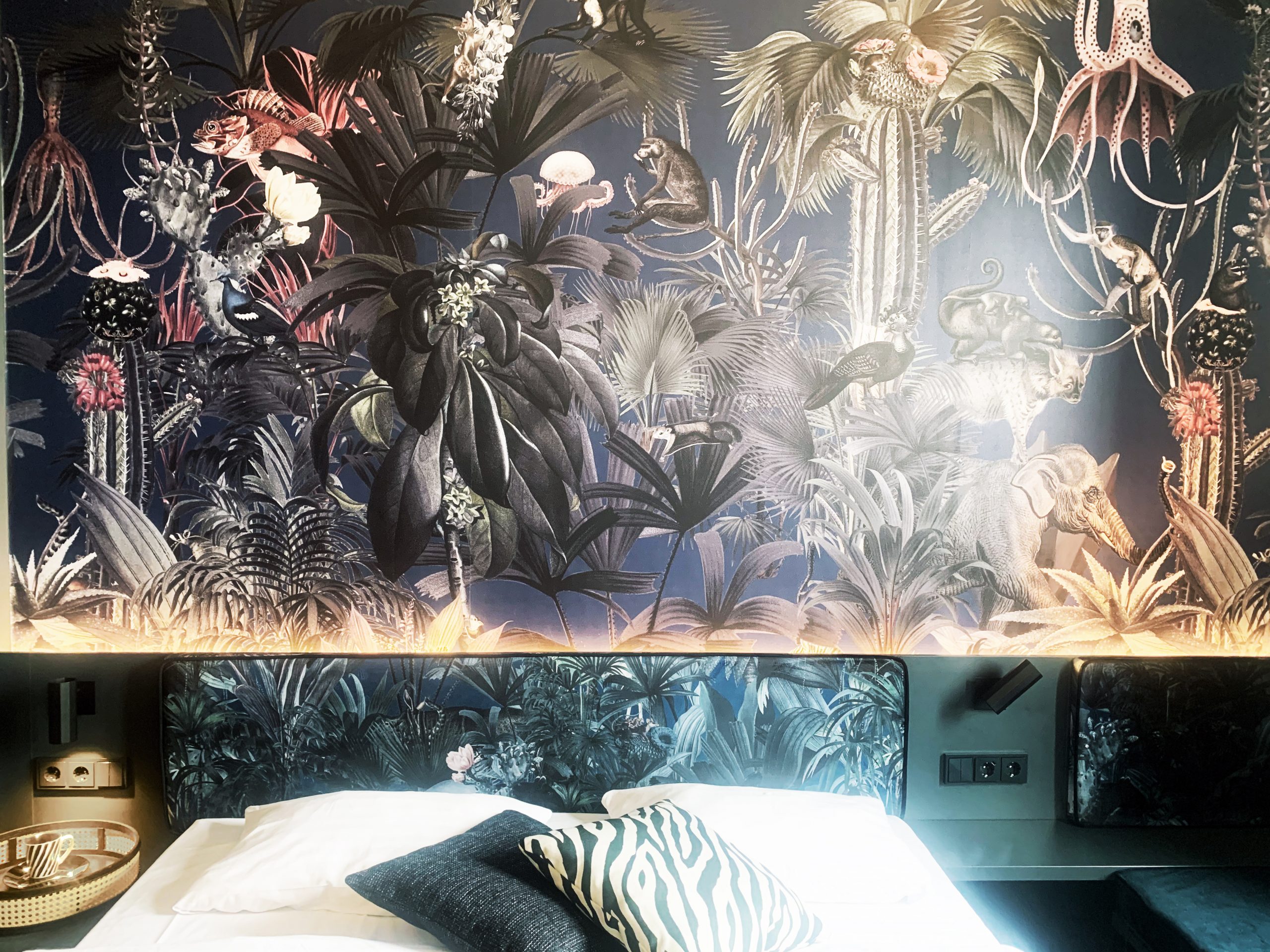 Für ein umfassendes Dschungelgefühl wurde bei der Konzepterstellung und dem Bau eines Musterzimmers auf die verwobene Struktur von Teppichen gesetzt.